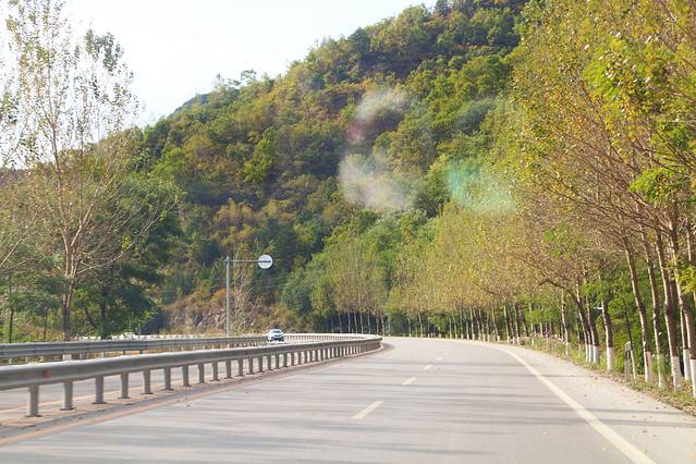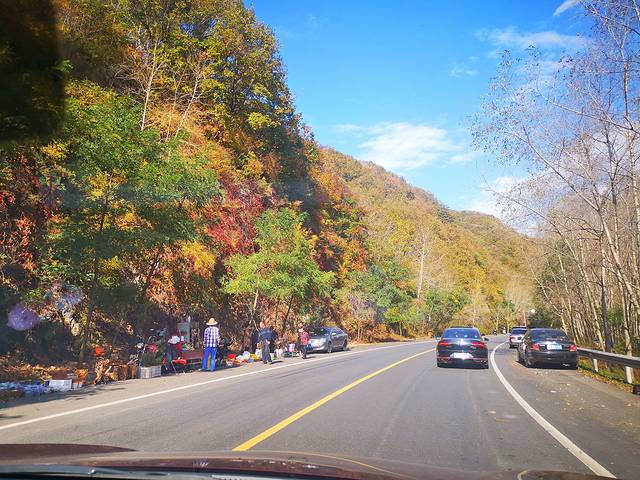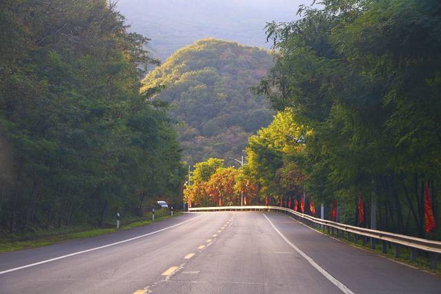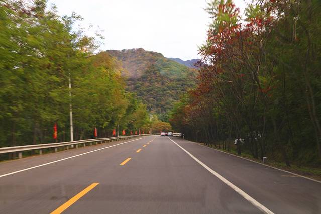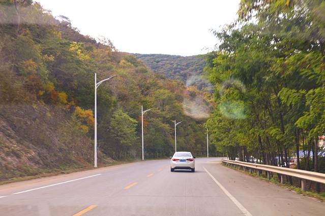 路两侧不远处都散落着各大著名的赏枫景点,关门山、大石湖、老边沟、洋湖沟等等都沿着公路在两侧排布开来。
