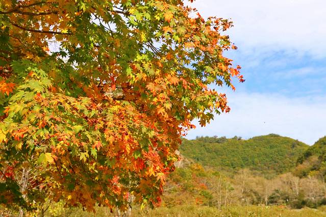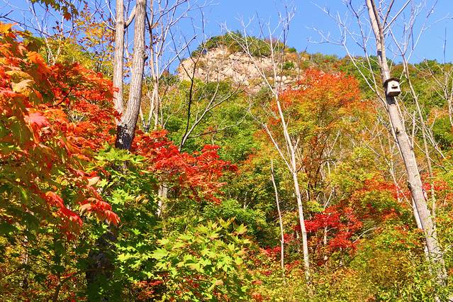 本桓公路是本溪县至桓仁县这一段,也是G305国道,全长64.82公里,有着"中华枫叶之路"美誉,路两旁是连绵的山峦,金黄色的落叶松,火红色的火炬树,远远望去,漫山遍野颜色各异的红叶高低错落,整条本桓线都是赏秋的绝佳路线。