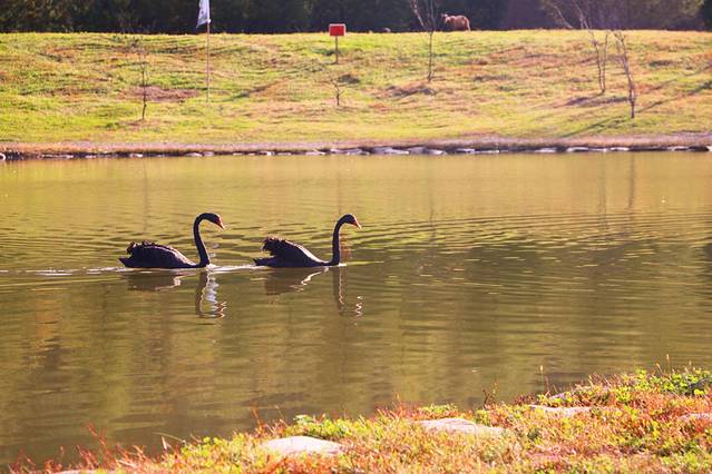 本来想拍拍牧场的小动物,可能是疫情的原因,都被关在了围栏的最里侧,无法再靠近喂食,只有几只天鹅在池塘里漫无目的的游来游去。