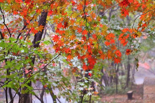 整个关门山游下来,都没有拍一张人像,落汤鸡的样子真的太可怜了!但一路上拍的枫叶是真的美,相比晴天,雨中的秋天颜色更有了穿透力。