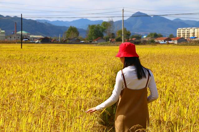 在碱厂镇,畅游在一望无际的金色稻浪。