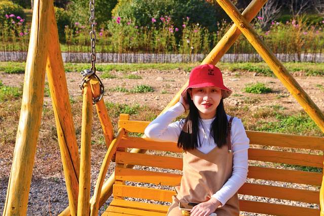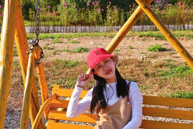 在山坡玩累了,我们找了一个秋千荡了起来,看着蓝天和白云,什么也不做,就静静的享受着秋天美景带来的一切美好。