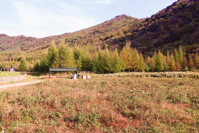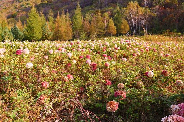 我们前往汤沟的路上,遇见了花沐溪温泉酒店对面的小山坡,整个小山坡就像是一个高山牧场,有各种小动物、秋天花海、草地、池塘、山林,完全不输大西北的的壮美秋色。