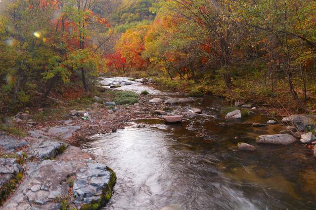 为了吸引游客,农家院也大都在溪流或是大河边修建的,住在这里的另一个好处就是出了门就能沿着溪流赏秋景,夜晚也可以坐在岸边看看漫天星空数星星。