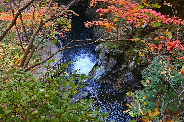 行至枫姿岩一段,景色不再是平面的感觉,更有了立体感,潭水从峡谷间奔流而过,响声响彻山谷。