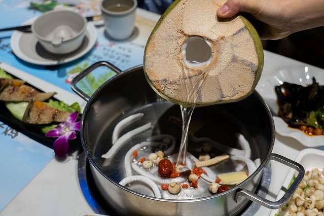 椰子鸡的特点就是每一只鸡从一出生就严格管控好成长品质与时间。 虽然在海南最不缺椰子,但是送来萌哒哒做食材的都是经过严格把控和筛选。椰子水非常清甜,和木瓜的味道融合得非常好!竹荪新鲜爽口!采用“裸烹”手法,真的是保留看得见的新鲜与健康。