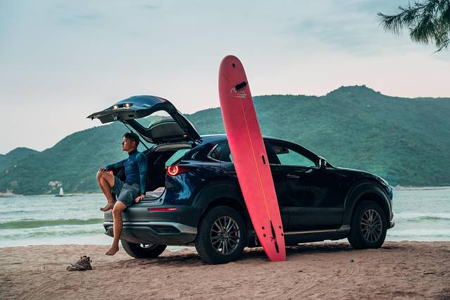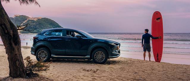 初见MAZDA CX-30 EV,就被它迸发着蓬勃生命力的魂动造型设计俘获,光羽智能LED前大灯和19英寸铝合金轮毂很给外形加分,高强度棱角纹防滑踏板细节满满,穹影曲面自带高光,用这样的高颜值陪伴我们开启海岛度假,我已然迫不及待想要去驾驶啦!