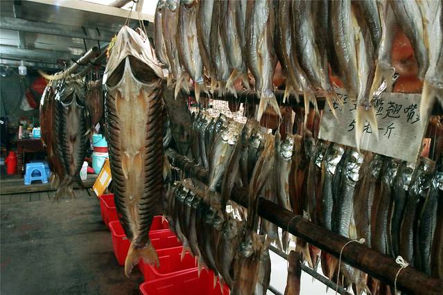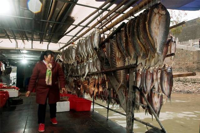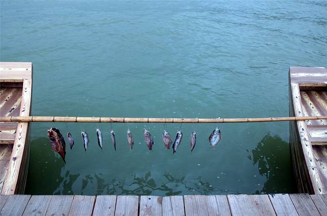 靠山吃山,靠水吃水。这里的渔家平常靠打鱼为生,打到鱼后新鲜的能现卖最好,卖不去的就腊起来慢慢的卖。