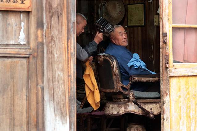 多年没见这种场景了,剪发掏耳朵,有人专心一意,有人一脸享受。