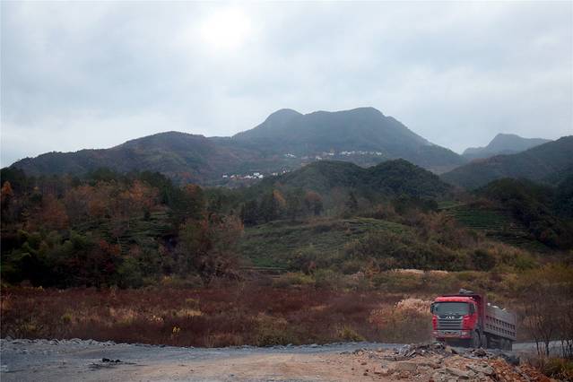 但到了这个牌坊后,修路。