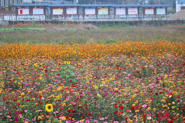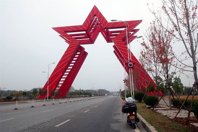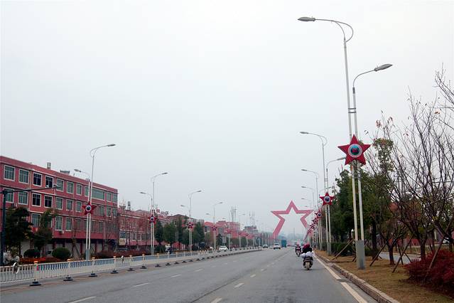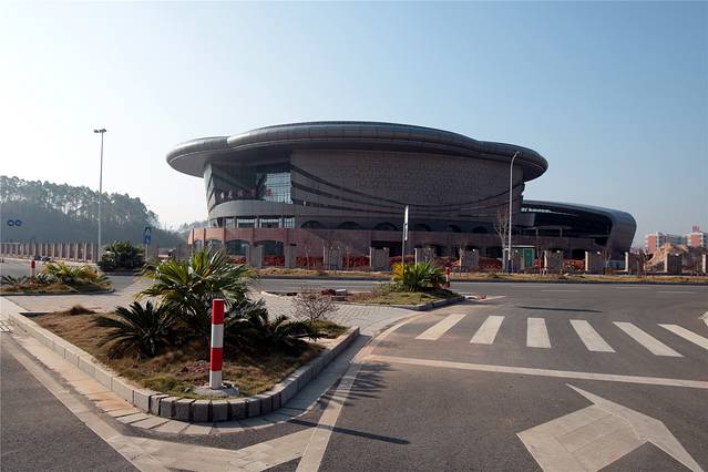 这里应是大余县的新区,道路、房子都是全新的。梅花体育馆,估计顶上也是梅花的形状。