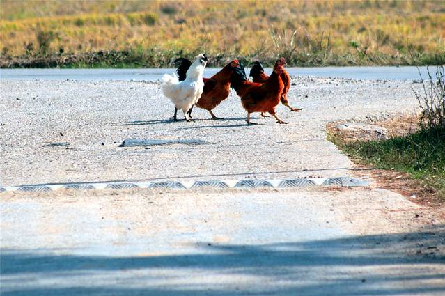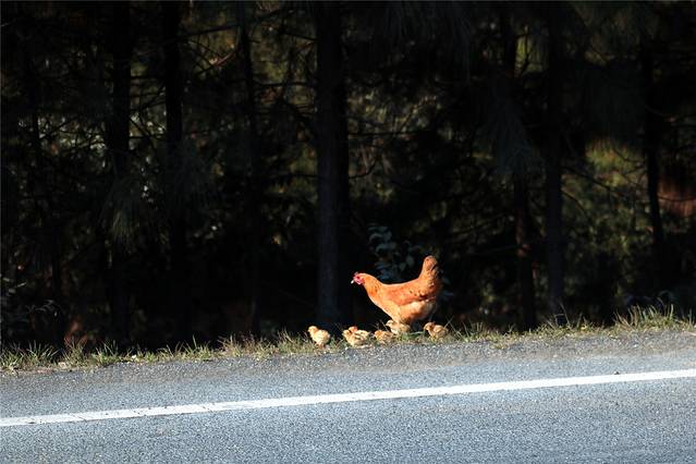 这个更是少见,母鸡带娃儿逛马路。