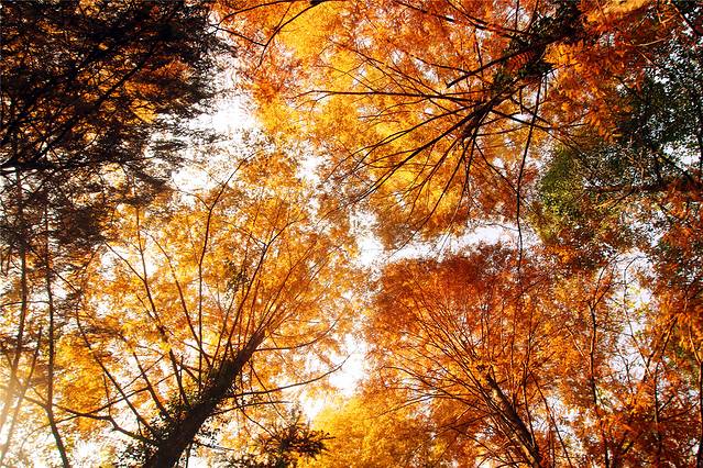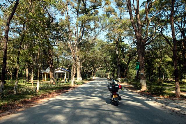两边高大的树木形成一条遂道一般,阳光穿过,投下影影绰绰的光班,的确很美。