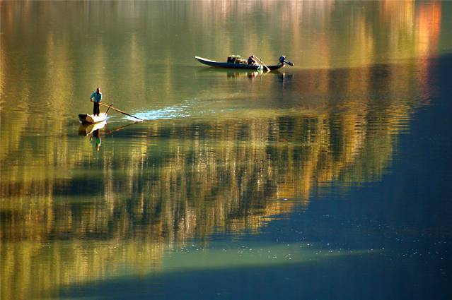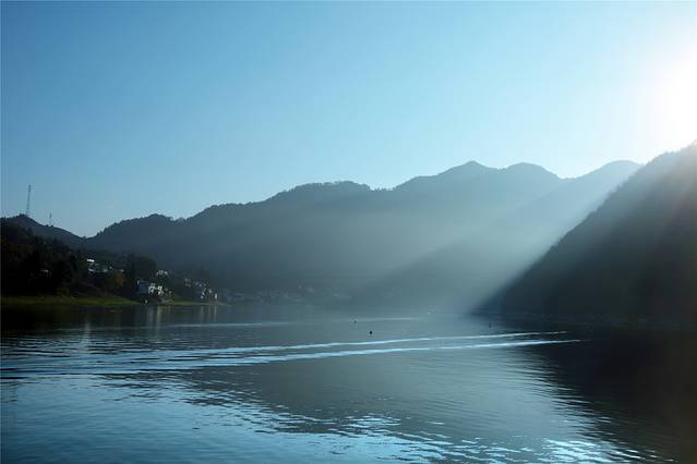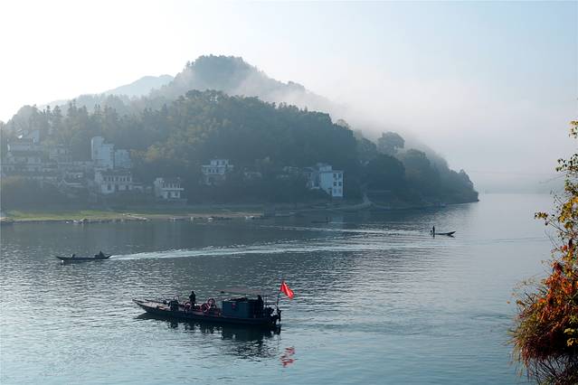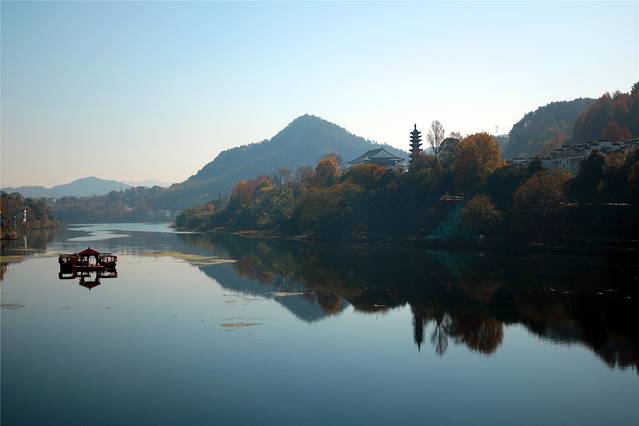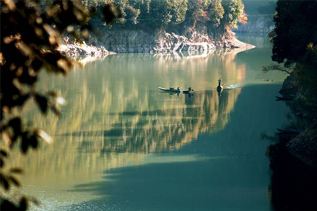 远山近水,层次分明,的确妙极的风光。