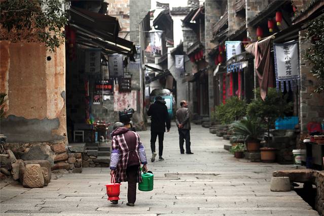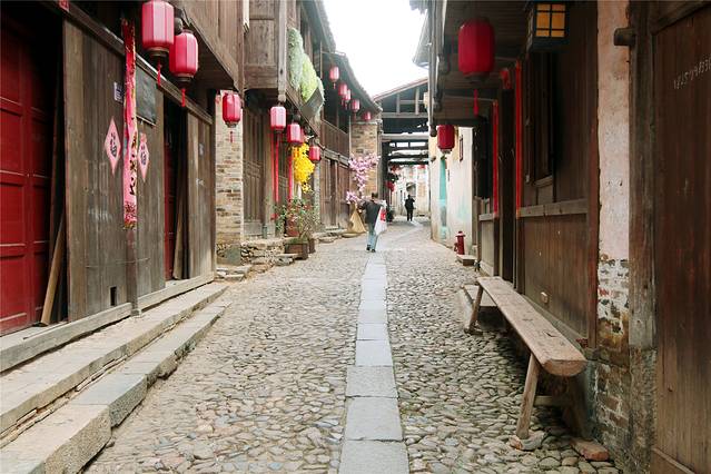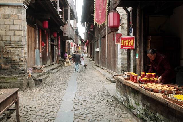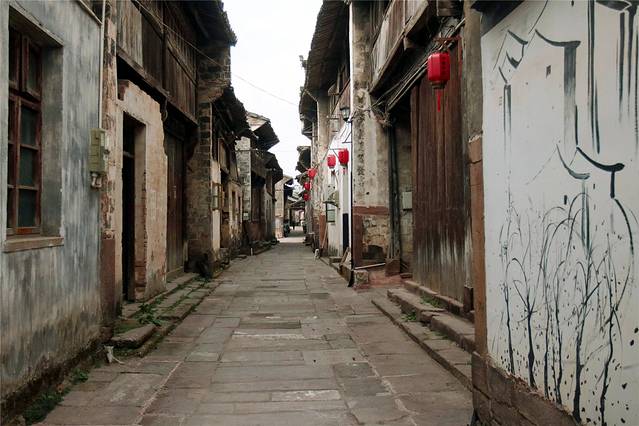 有的全部铺河卵石,贯穿古镇南北的旧市街。