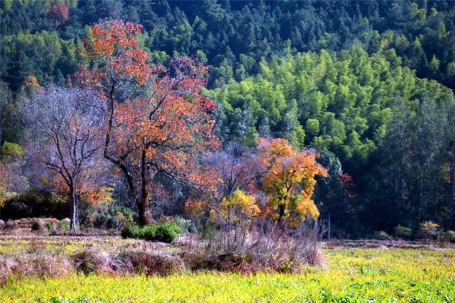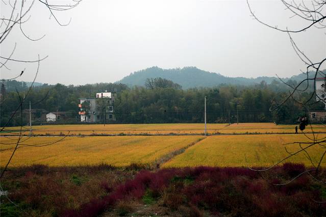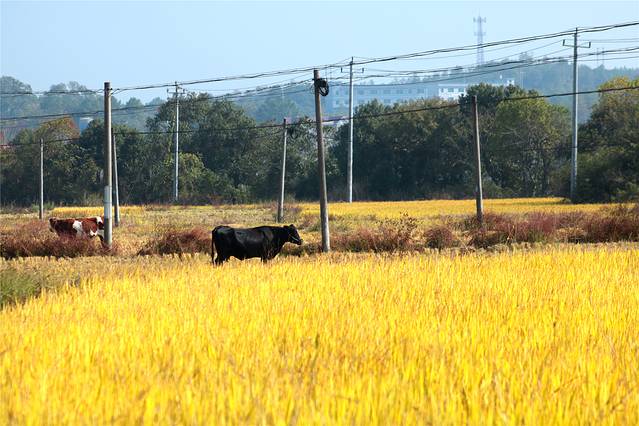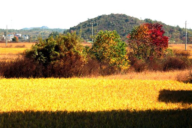 还有禾稻没有收割,一片金黄。