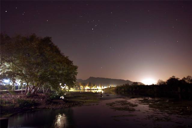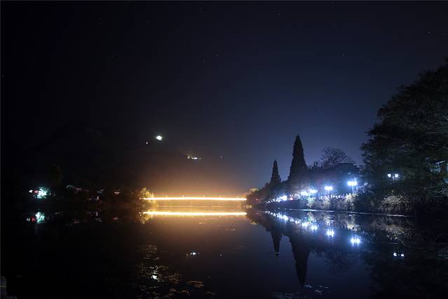 今晚有刚有月牙儿,星光也不多,草草拍几片,回房休息。