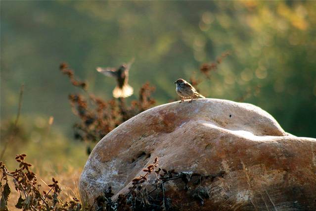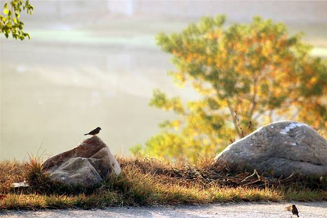 暖暖阳光下,各种小鸟吱吱喳喳的在草丛空地林间穿梭飞舞,很是热闹。