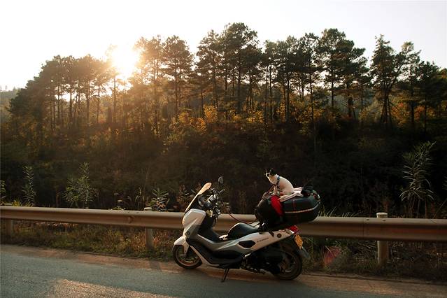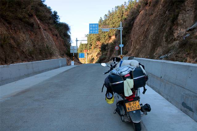 闲话休提,9号一早,一人一车一狗,几套替换衣服,背包帐蓬,出发去也。