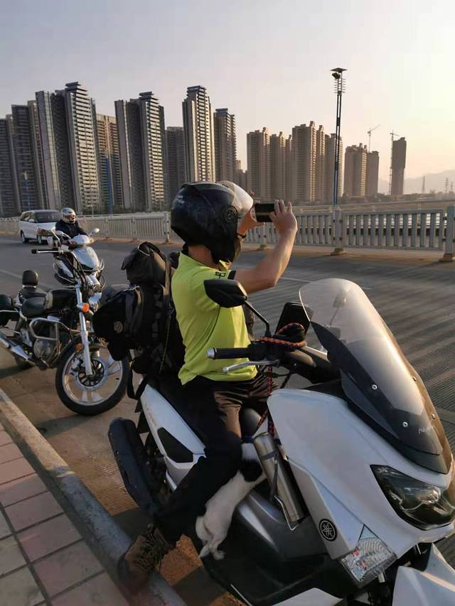 一早出发,有摩友送俺一程,帮拍了张照片和视频。