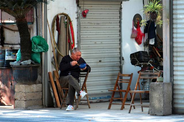 冬至之后,村民轻松了不少,可以休闲的吃早餐。