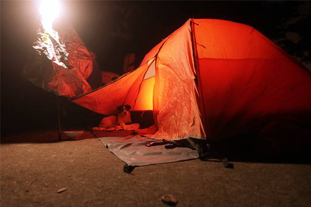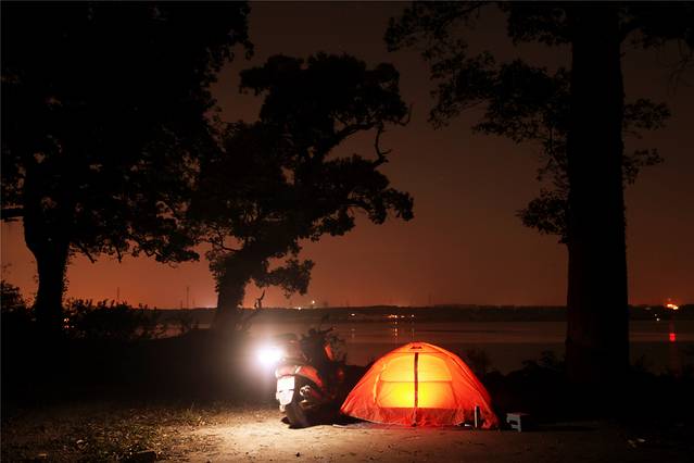 然后驱车进入古林之中,就着皎洁月色,支起帐篷,露营一晚。