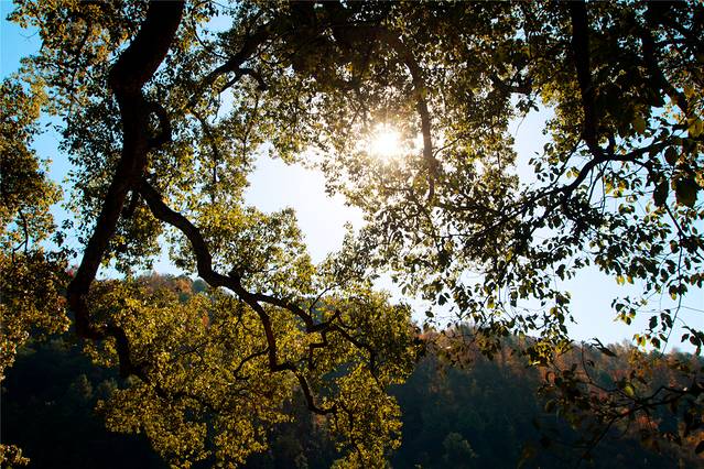 昨晚天黑才钻入树林之中,到现在才看清古林面貌,阳光穿过丛林,就如原始森林一般,有些神秘的感觉。