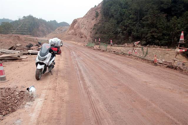 不过可能不想扬尘,竟然把烂路洒水了,那可是黄泥面哩。