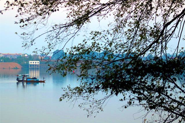 早上7:00点,天色已亮,赣江边一早就有渔家在打鱼。