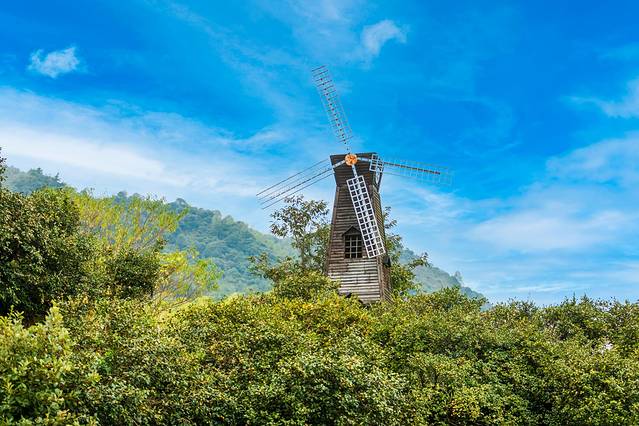 山坡有一间古色古香的茶室可以喝茶,品尝当地的小吃!
