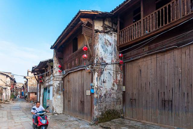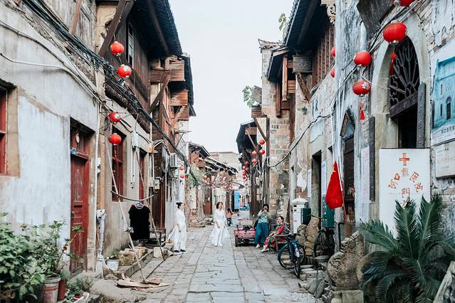 如今的古镇早已没有往日的繁华,河口明清古街被称为江西第一古街,至今还保存着较完整的明清古街及大量赣派建筑,五百米长的明清古街依信江河而建,老字号的旧址老宅鳞次栉比,斑驳的木门板充满了岁月的痕迹。