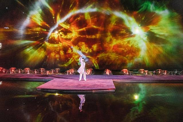 在水舞台上,舞蹈演员们伴随时而激荡、时而舒缓的音乐,演绎出一幕幕跌宕起伏的仙境传奇故事,堪称一场精彩绝伦的沉浸式感官体验。