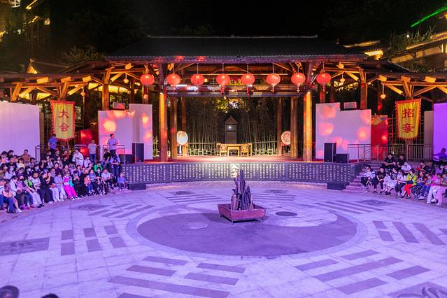 灯光秀演出结束后,在互动演艺剧场上还有民族风情的篝火晚会。