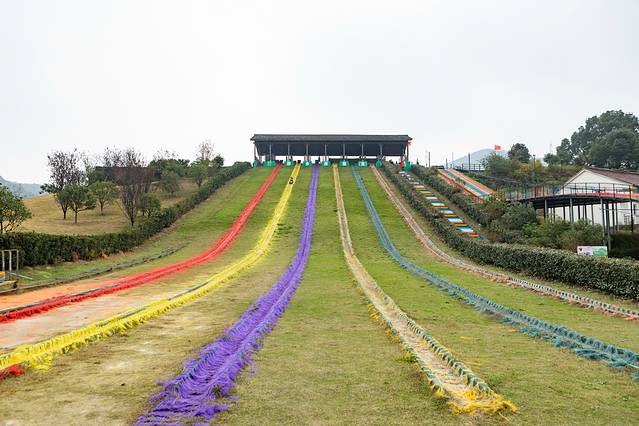 就像景区的宣传语“身在都市、梦回原乡”描述得一样,这里活脱脱就是一个山野探险乐园。亚洲最大的蝴蝶生态科普馆、带5D特效的高空玻璃桥、既刺激又有颜值的彩虹滑道、落差高达160米的玻璃水滑道、网红童话小火车、酷炫卡丁车、骑马场等游玩项目,应有尽有。