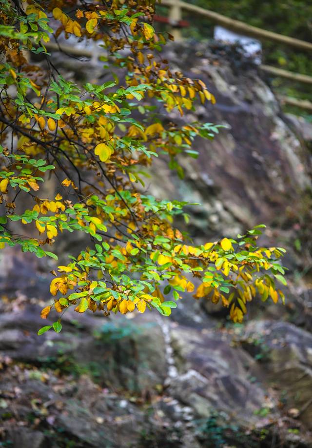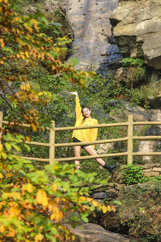 在这深秋季节,种满银杏树的野村谷中的色彩丰富极了,绿色、黄色、红色的树叶在这里交相辉映,宛若一幅色彩极其丰富的水墨画,许多慕名而来的武汉乃至河南、安徽、湖南等外地游客都会慕名而来,在这里打卡拍照,那和谐的氛围美极了。