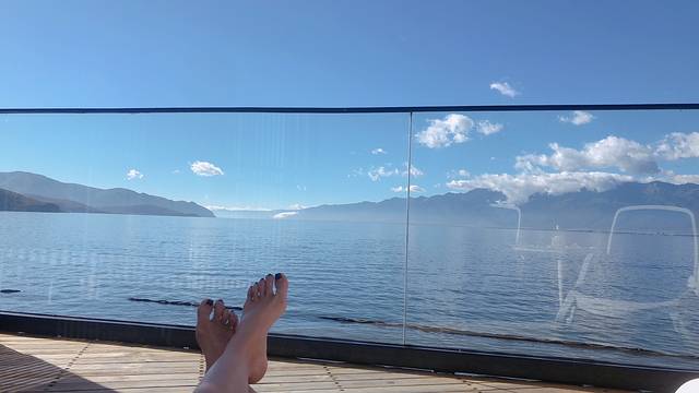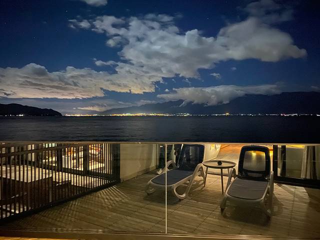 重点是这个景观真的太棒了!我在阳台呆到了凌晨2点,月亮特别亮(感觉离得很近),漫天的繁星,远处的山,眼前的湖水,耳边的水声,让人太放松了