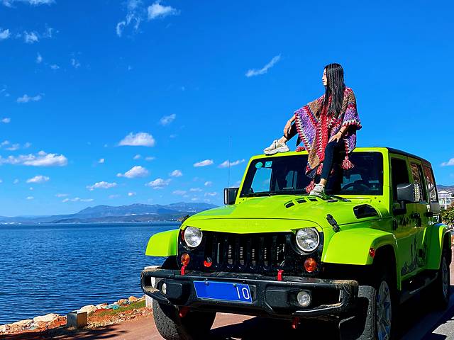 编发的阿姨推荐了租车公司,下午4:30租了一辆新款的荧光绿牧马人350元/天,比预计中价格要低(预计500元/天),芝麻信用分650分以上免3000元租车押金,需要租车的宝宝们记得带驾驶证出行哦!老板人不错,说延迟一个小时还车也不多收钱。