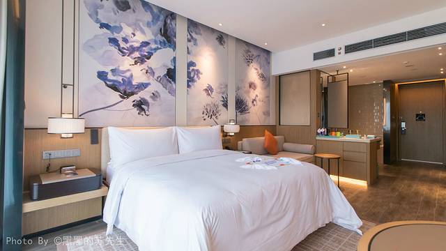 英德奥园希尔顿逸林度假酒店开业于2020年,酒店共有301间客房及套房,这次入住的是豪华湖景大床房,房间的面积相对适中,官方显示有36平左右。整体比较宽敞明亮,个人很喜欢客房内的色彩配比,既保持了希尔顿逸林的特有风格,又融入了欧式元素,给人一种特别舒适的感觉。
