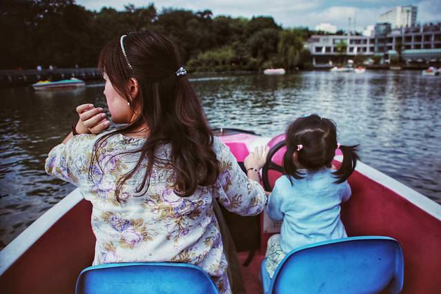 公园里面可以划船,50元40分钟,超时每分钟2元。选择好前进或后退档之后,转方向盘即可。