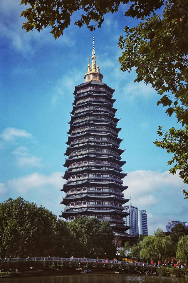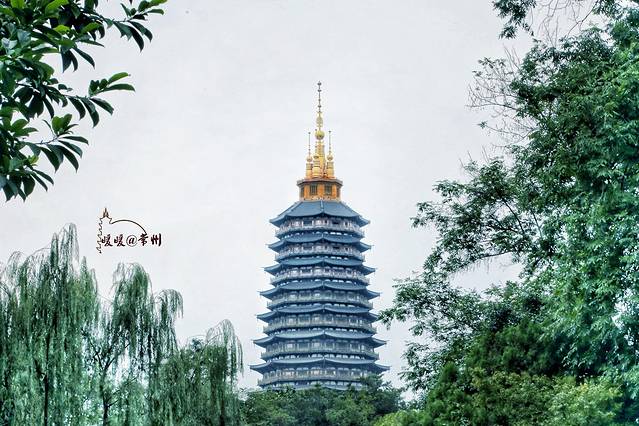 我老公真的超爱这座塔,说是今生挚爱也毫不为过。从白天到夜晚,从陆上到湖面,各个角度照了无数张。所以手残如我,依然尽我最大努力抠了一个天宁塔形的logo,做这次旅行的水印。
