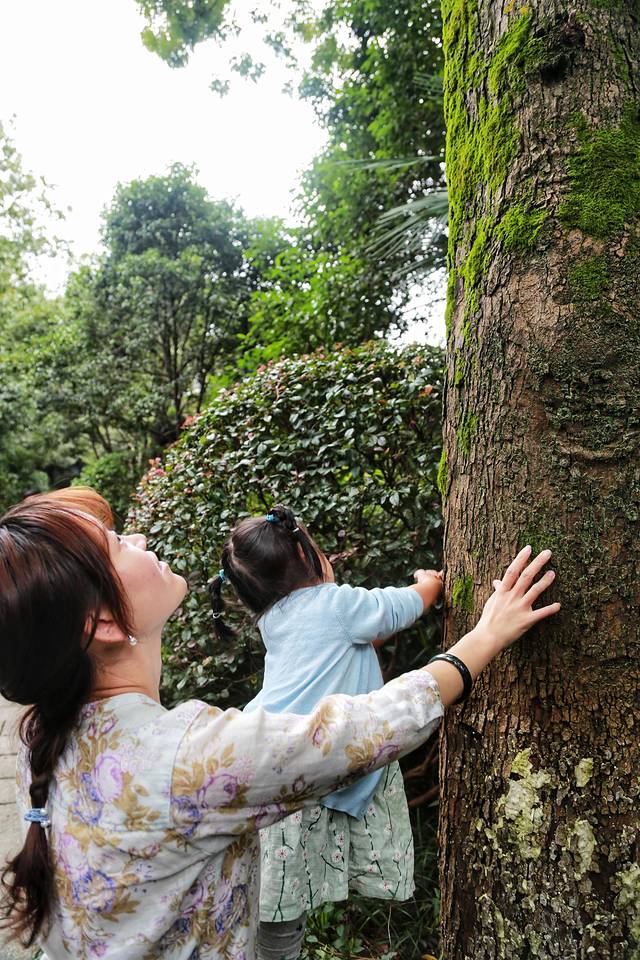还有几颗古树,树皮上布满青苔,我让暖暖摸摸,这是最直观的对岁月的感触。粗粝的手感和她平 常熟悉的毛绒玩偶、光滑的塑料玩具大大不同,所谓旅行是最好的教育,大概就是指这些吧。