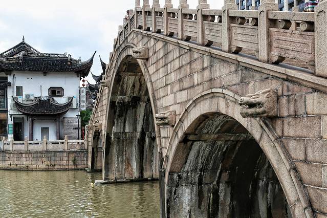 当时并不知道这座古桥的来头,但是第一眼就觉得造型规整美丽,石块斑驳,一看就是饱经风吹雨打,还有桥身上突出的龙首,真的是头一次看到这样的桥,既饱经沧桑又坚固如初,望着就充满感动和敬畏。