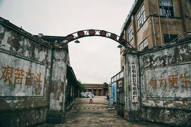 创意街区有两个门,一个是从上面这组雕塑进去,一个是原常州第五毛纺厂的大门旧址。