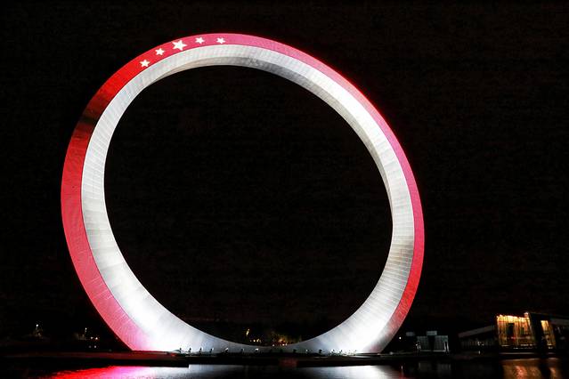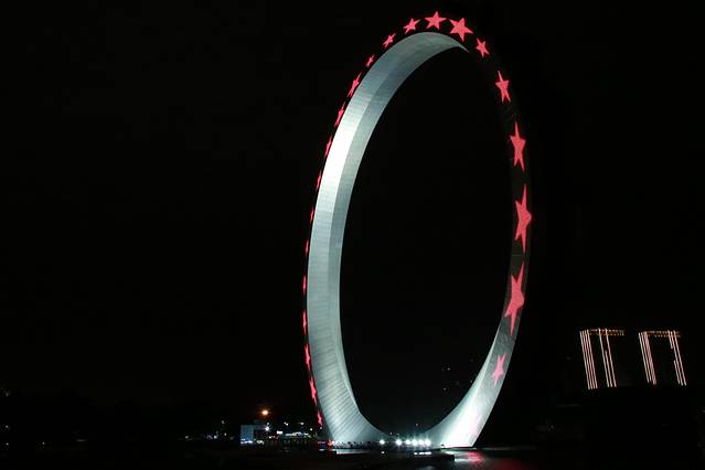 之所以选择晚上来,就是为了看摩天轮的夜景。周边一圈屏幕不断变换画面。国庆节嘛,一定要选取一张五星红旗的。