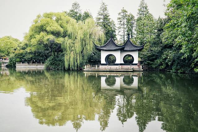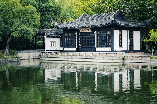 公园里面包罗 万象 ,既有这样精致的亭台水榭,也有人民群众喜闻乐见的交谊舞。依水而建的小阁,在水面上投射下动人的倒影,形成一幅极具中国风的画卷。再过些时日,后面衬着的绿树变得红红黄黄,一定更加好看。