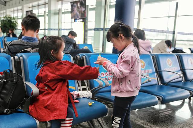 美好的旅程从机场开始。照片中的小姐姐很喜欢暖暖,开头是由妈妈领着过来打招呼说要一起玩,之后就一趟趟的把粘土拿过来和暖暖一起玩,让不断延误的候机时光变得生动起来。