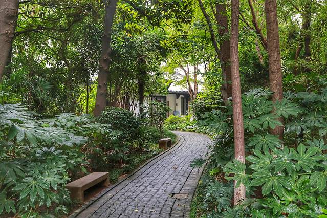 公园很大,小路两旁是浓密的绿植,空气也格外清新,几块 太湖 石点缀其中,平添几份灵气。