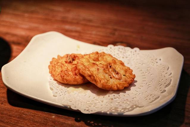 没有吃到青果虾饼,就在这里补上吧。不是海虾,是小河虾,脆生生的。不过据说以前虾更多。