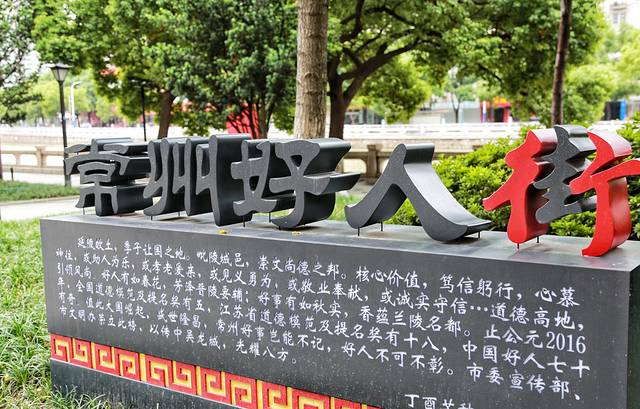再就是这条常州好人街。沿街隔一段就有一个广告牌,上面有好人的事迹。驻足看了几个,见义勇为、徒手接住坠楼的人、救起溺水的人等等。与我们熟知的好人好事并无二致,但却是发生在我们周围的人,也许登榜的就是你的同学、朋友或邻居,这种力量和震撼是那些遥远的楷模所不能比的。