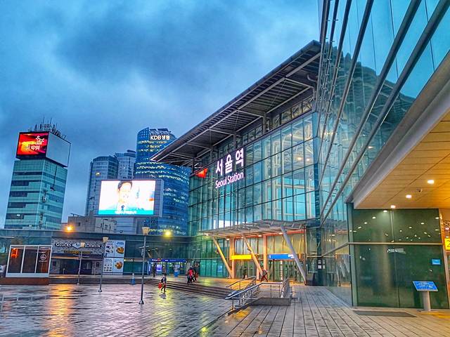 就在首尔火车站旁边,步行五分钟,坐公交车1个站即达